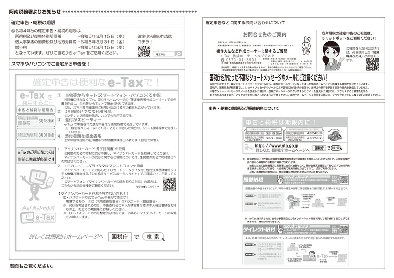 税務署からのお知らせもご確認ください。