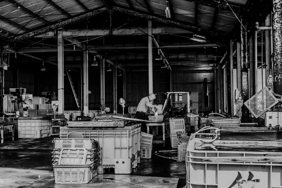 【コメント】水揚げされた魚を選別していたおじさんに牟岐の魚の事を聞きながら撮影した1枚の写真です。