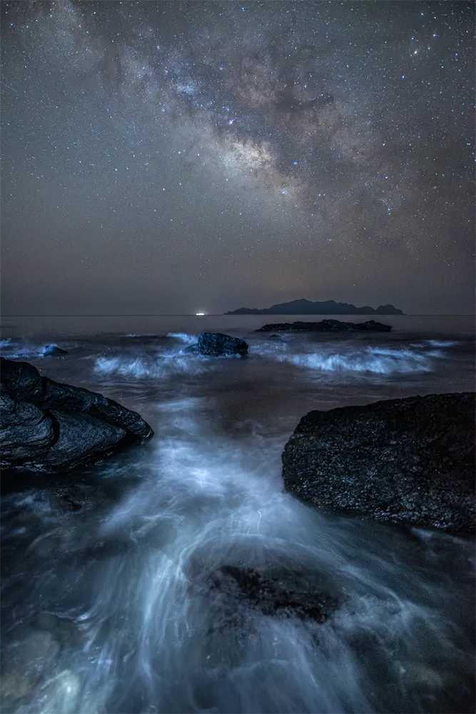 - 輝く星に呼応するように光る海と、遠くに浮かぶ島がすごく素敵です。